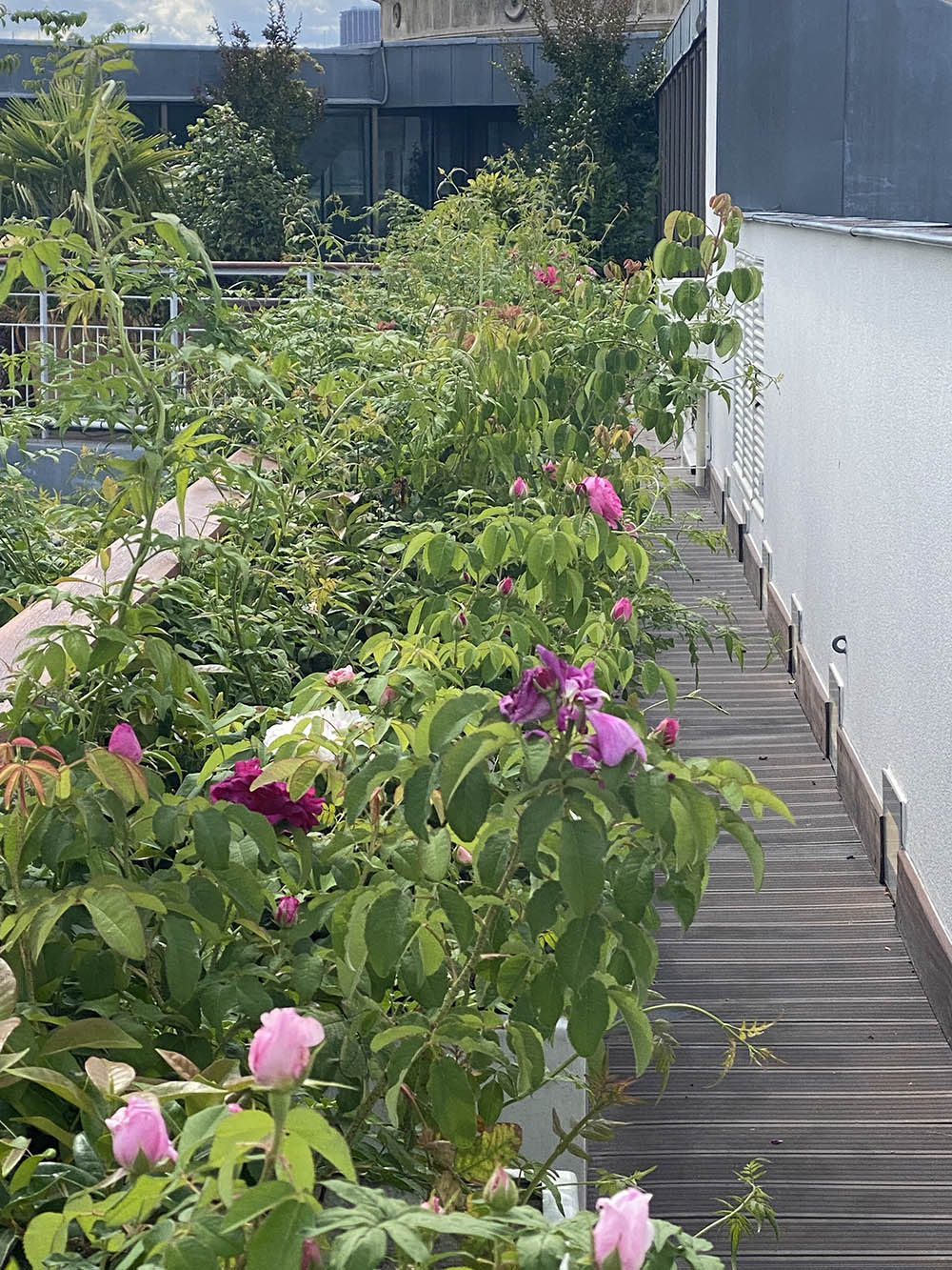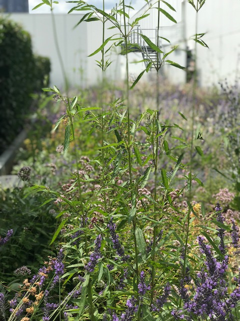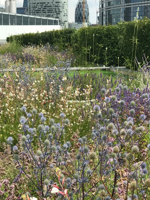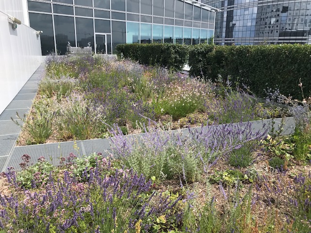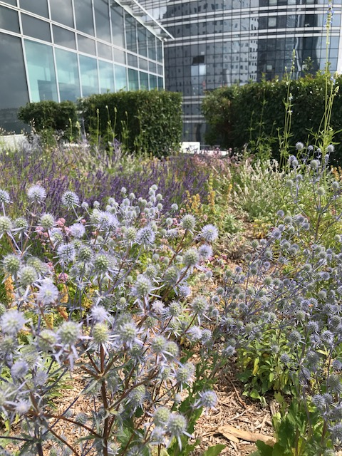 Fin de la période de confortement du chantier de la Tour Basalte, réalisé par DVA - MOE : PHYTOCONSEIL. Plus de 300 000 abeilles butinent lavandes, echinops, origan, thym, et autres plantes mellifères !