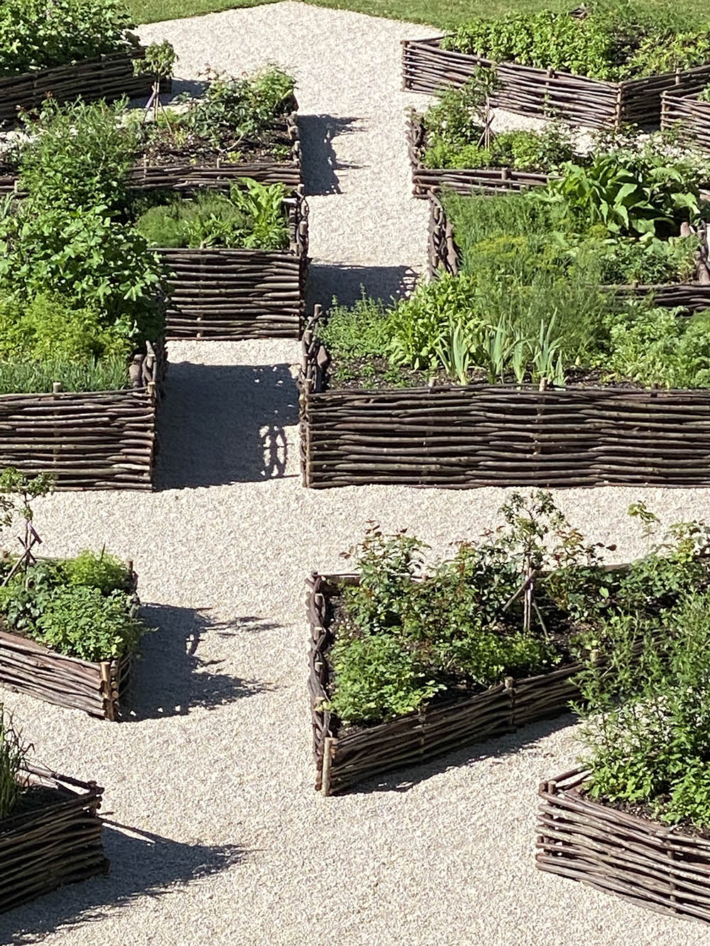 Inauguration de la nouvelle collection végétale dans le jardin des neuf carrés, à l'Abbaye de Royaumont, conçue par DVA. La sixième exposition végétale propose d’explorer le quotidien des femmes et des hommes médiévaux et leurs liens avec les arbres.
