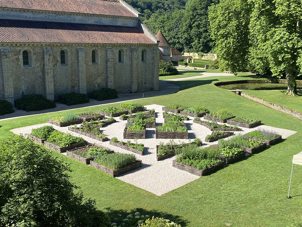 Livraison du jardin des simples d'Hildegarde de Bingen conçu par DVA à l'Abbaye de Fontenay (Montbard).